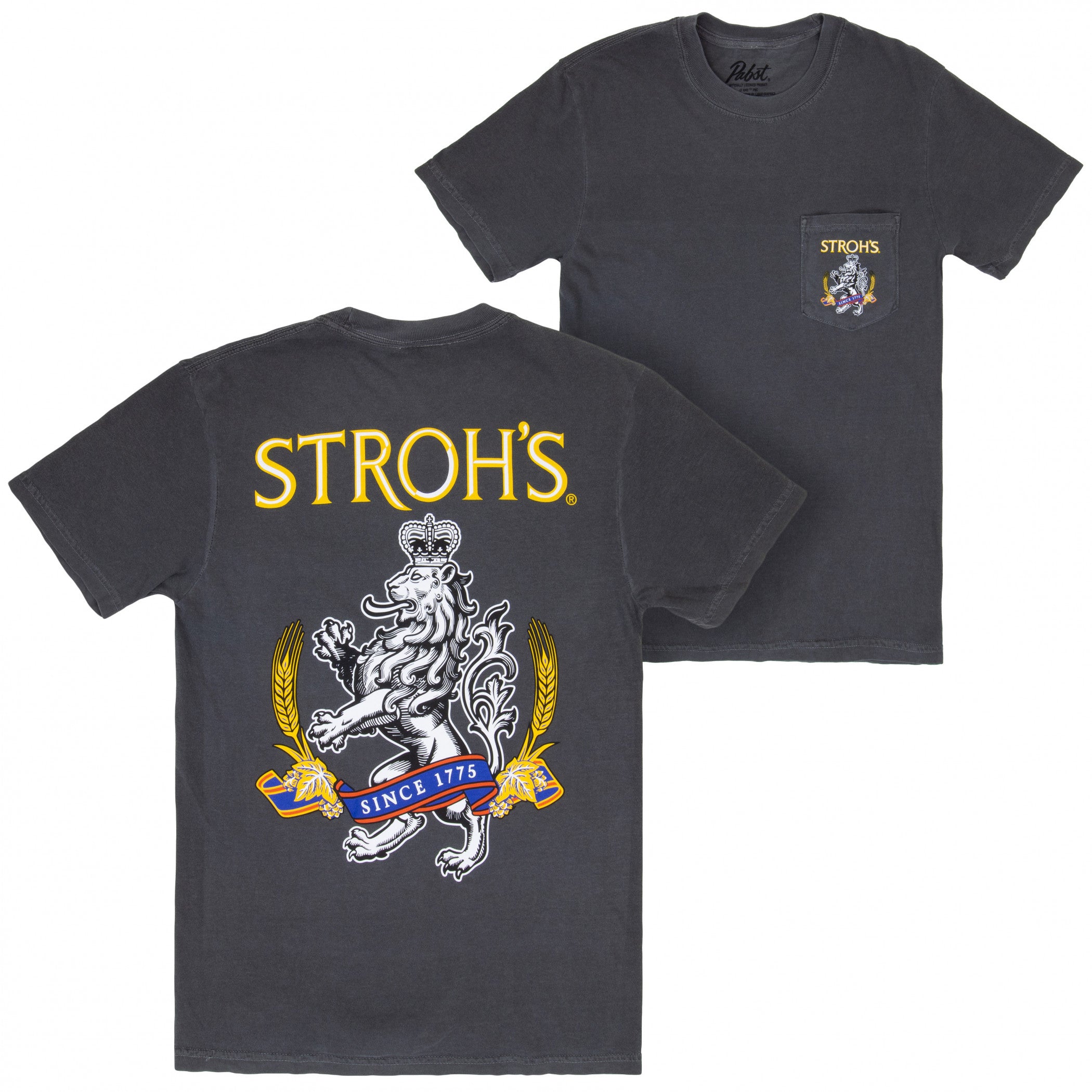 Officially licensed Stroh's Since 1775 Black Front and Back Print T-Shirt. This "Stroh's" t-shirt is made from cotton and features the classic "Since 1775" design printed on both front and back in black colorway.
